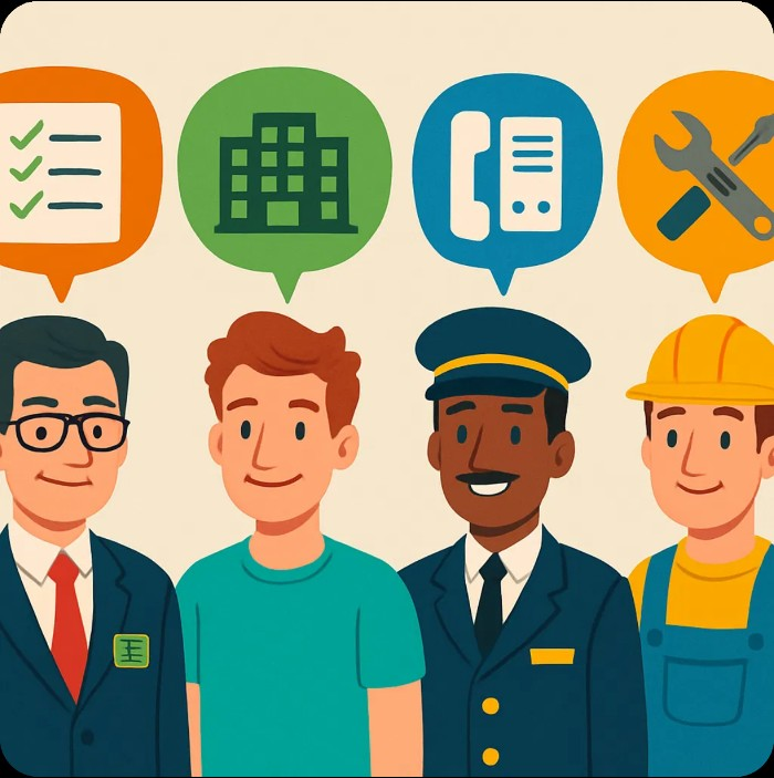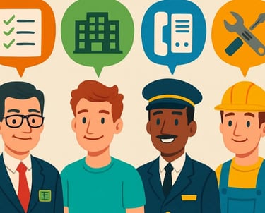 Síndico, Morador, Portaria e Manutenção.