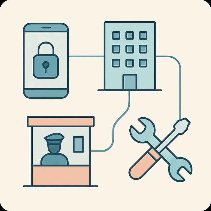 Permite uma comunicação eficiente entre moradores, síndico, portaria e manutenção.